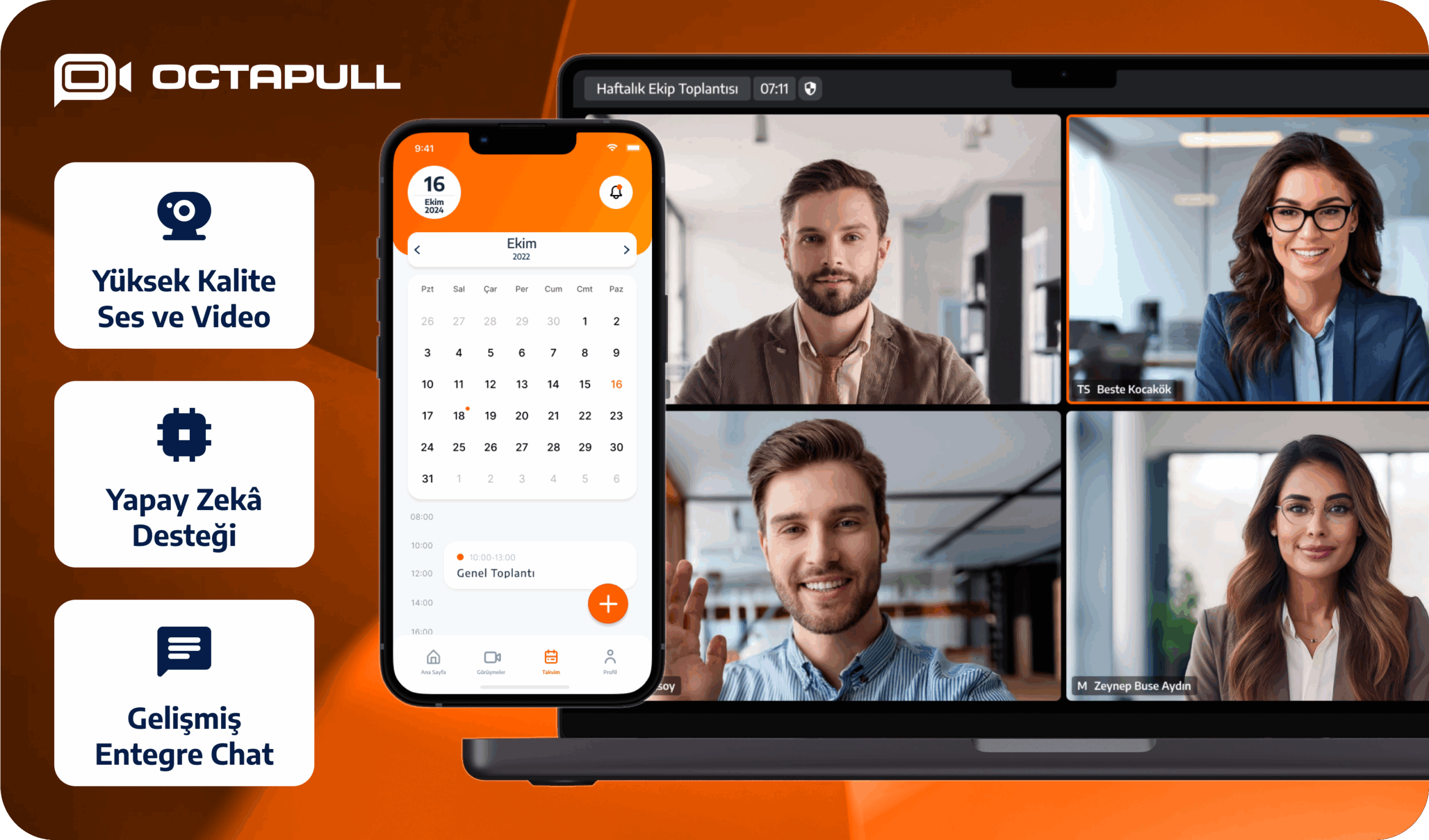OCTAPULL altyapısıyla geliştirilen OctaMeet, gelişmiş teknolojisi, sezgisel arayüzü ve yapay zekâ destekli özellikleriyle hem bireysel hem kurumsal kullanıcıların verimli toplantı deneyimleri yaşamasına olanak tanır.
